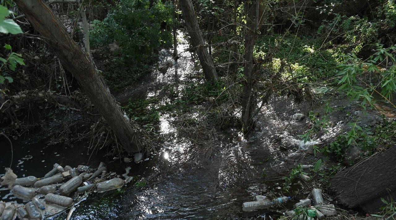 Ubicado en el costado sur-oeste del estadio mundialista, el agua fluye sin control debido a la basura que tapa los puentes y la falta de un cauce para su recorrido.