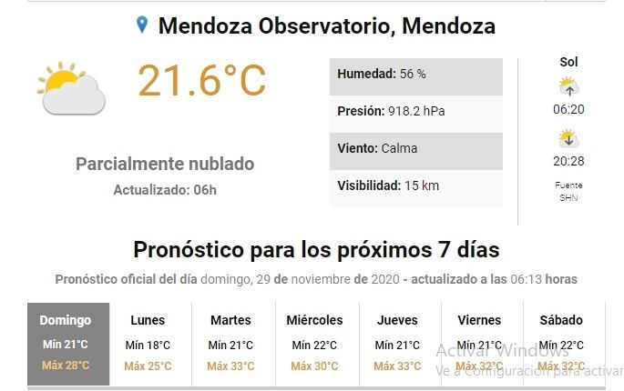Según el informe del Servicio Meteorológico Nacional, este domingo se registrará un leve descenso de la temperatura, así que ¡aprovechá y disfrutalo!