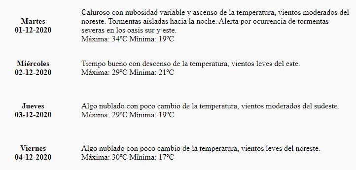 Además, el organismo dependiente del Gobierno provincial, emitió un alerta por "ocurrencia de tormentas severas en los oasis sur y este".