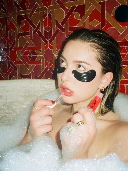 Se pueden ver otras de las imágenes en donde la joven posa, además de estar en la bañera, con unos parches anti ojeras y hasta poniéndose un brillo labial de la marca creada en la ciudad de Nueva York.