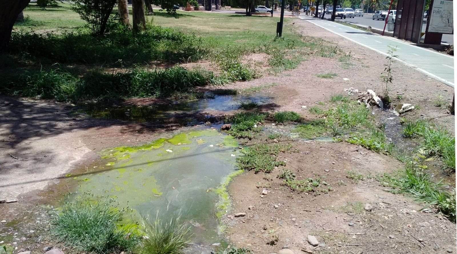 Se sea turista, mendocino de paso o deportista asiduo que elige el Parque General San Martín para el paseo o el deporte, en algo coincidirán: la triste postal que representa la constante pérdida de líquido de una cámara cloacal que no sólo invade el entorno sino que además el olor en la zona es insoportable.