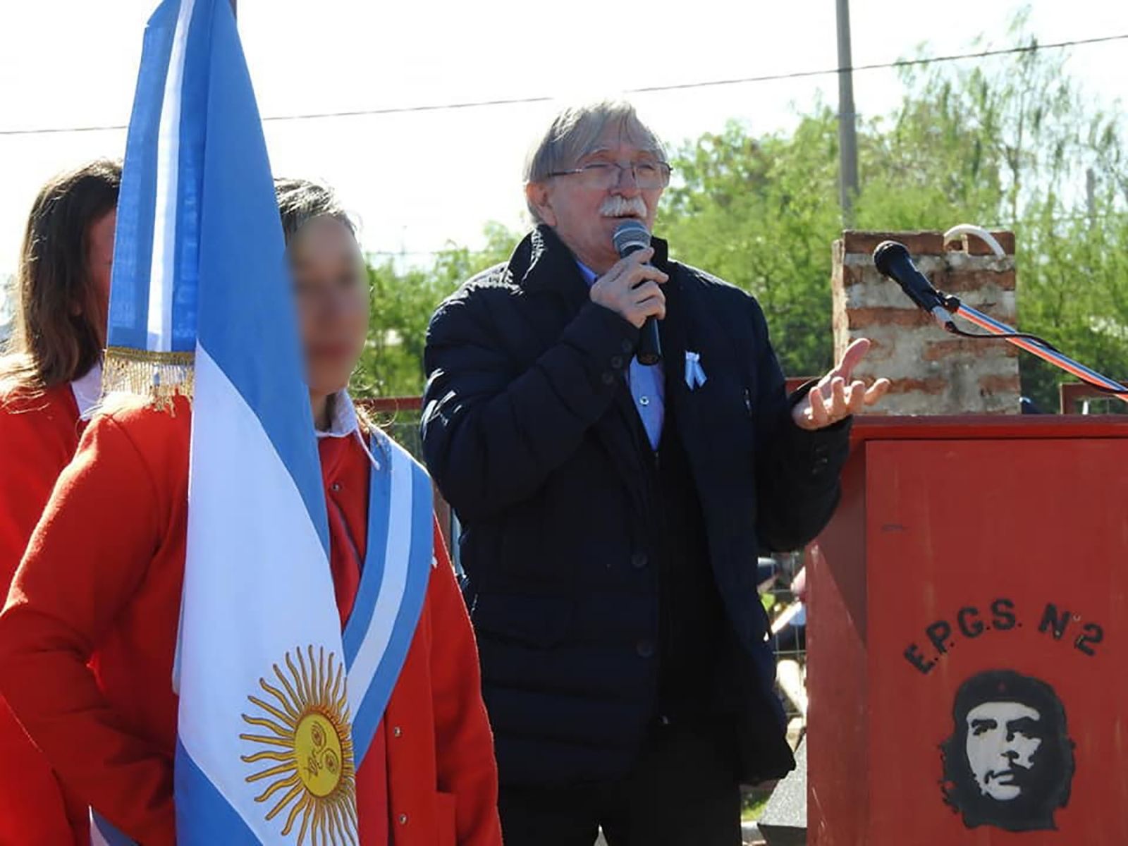 Como si en Argentina no tuviéramos próceres ni canciones patrias, una escuela decidió realizar el acto de fin de ciclo homenajeando a Ernesto 'Che' Guevara y también exhibió la bandera de Cuba a la par de la nuestro país.