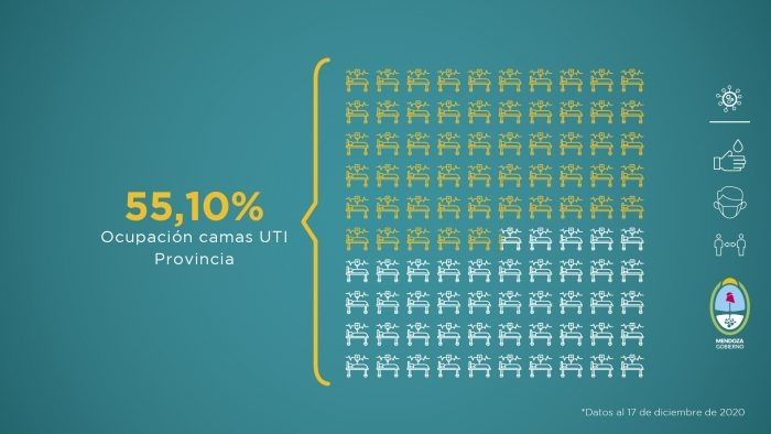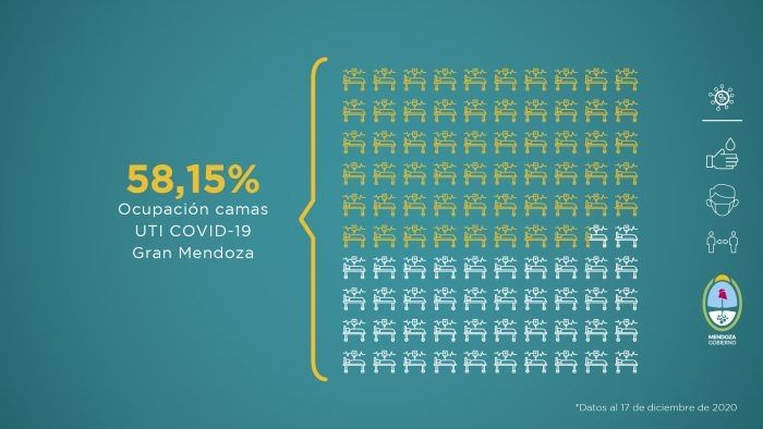 Mientras que el último informe brindado el pasado viernes 11 de diciembre indicaba que el 69.19% de camas en el Gran Mendoza eran ocupadas por pacientes con coronavirus, el informe de hoy indica que ese número bajó hasta el 58,15%.