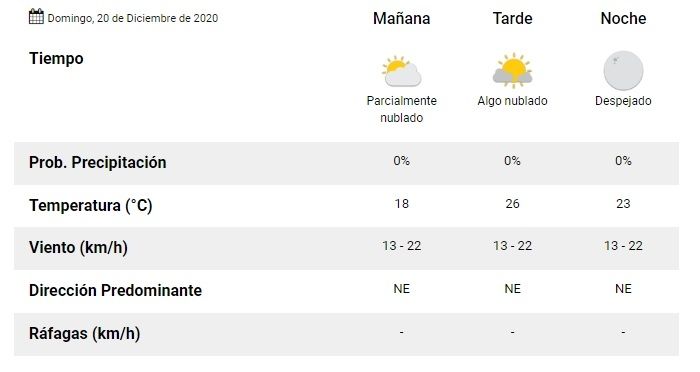 Para este domingo, el Servicio Meteorológico Nacional pronostica una temperatura mínima de 15º C y una máxima de 26º C.