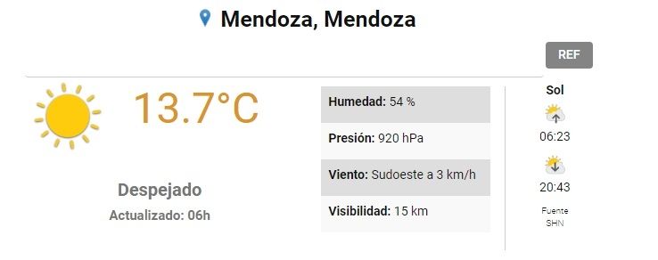 Para el pronóstico extendido, se espera que este sea el último día de la semana con temperaturas agradables, ya que para el comienzo de semana se espera una suba de la temperatura que alcanzará, por lo menos, los 32º C.