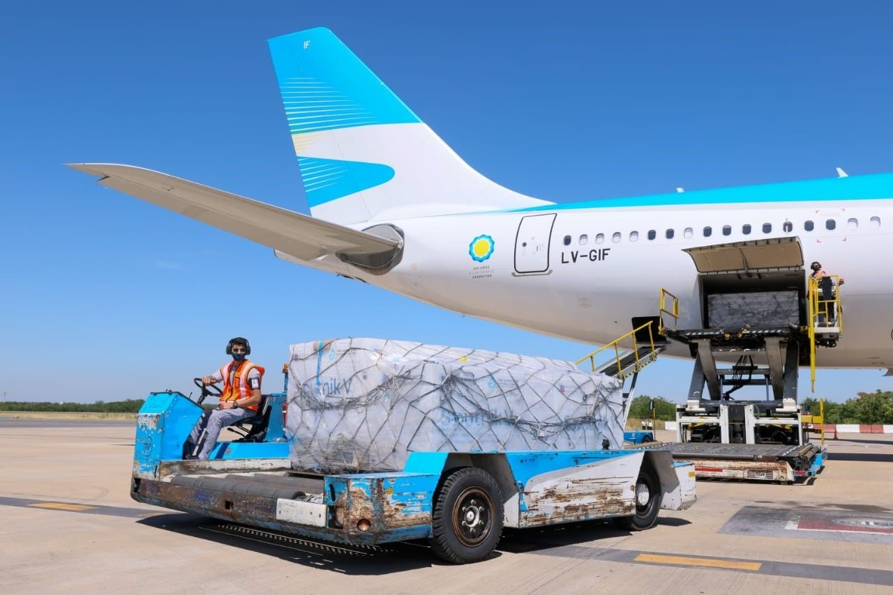 El operativo comenzó con el traslado de la carga desde el aeropuerto internacional de Ezeiza, a donde arribó el avión desde la ciudad de Moscú.