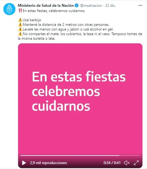 Hay ciertos cuidados que deben mantenerse, ya que si bien el riesgo de contagio en la provincia es mínimo, existe y preocupa. En este sentido el Ministerio de Salud elaboró un listado de las recomendaciones a tener en cuenta este 24 de diciembre.