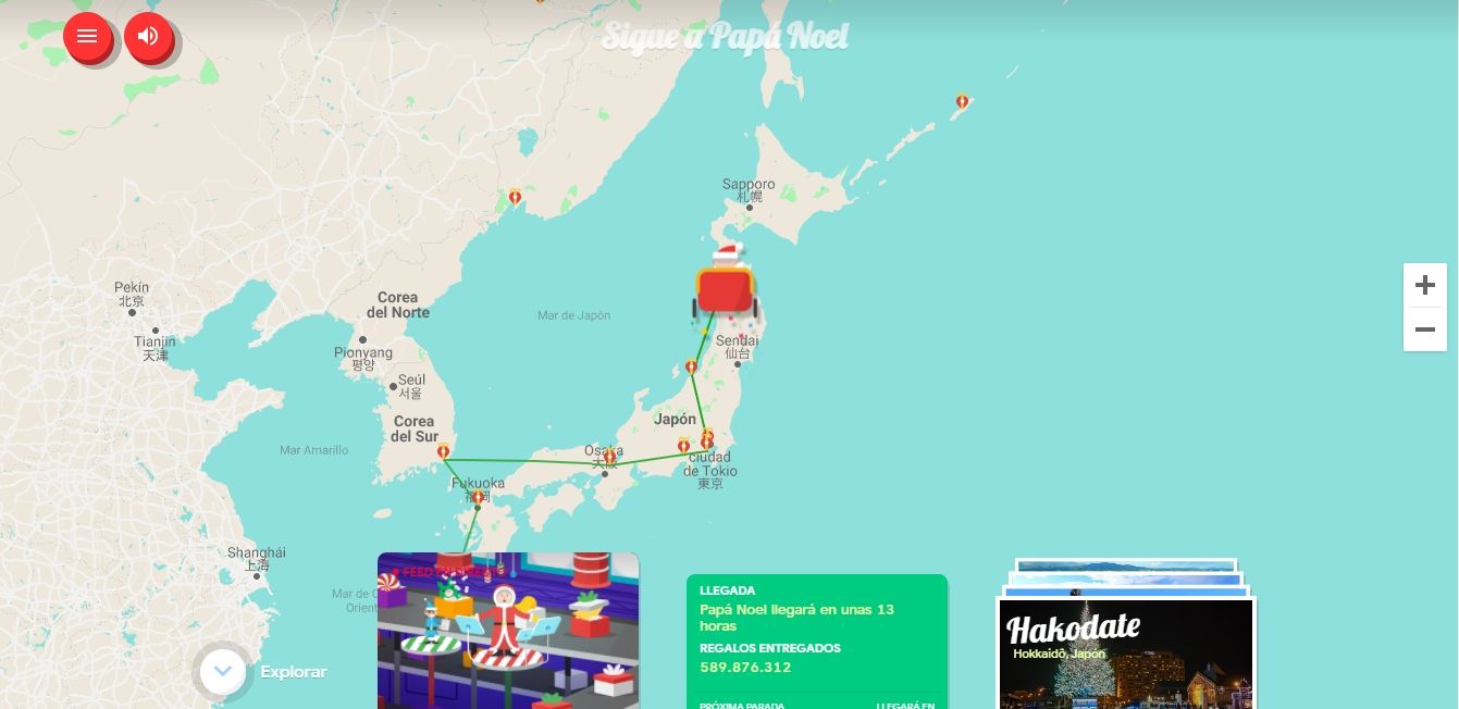 Una de las opciones es Santa Tracker, esta página permite saber cuándo el trineo se encuentra en movimiento, cuándo vuelve a viajar, en qué país o ciudad del mundo está, cuántos regalos lleva entregado y hasta cuánto falta para que llegue a tu localidad.