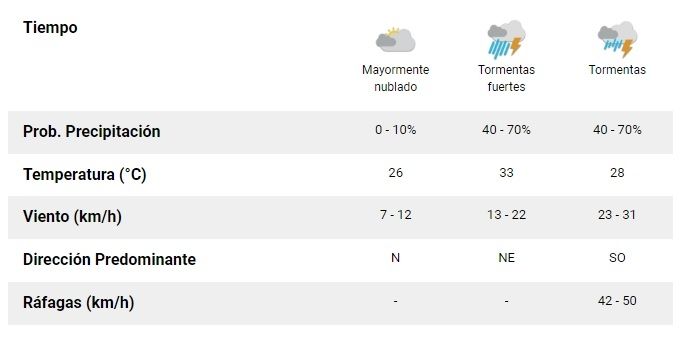 Por otra parte, se esperan ráfagas que pueden alcanzar hasta los 50 Km/h al final del día.