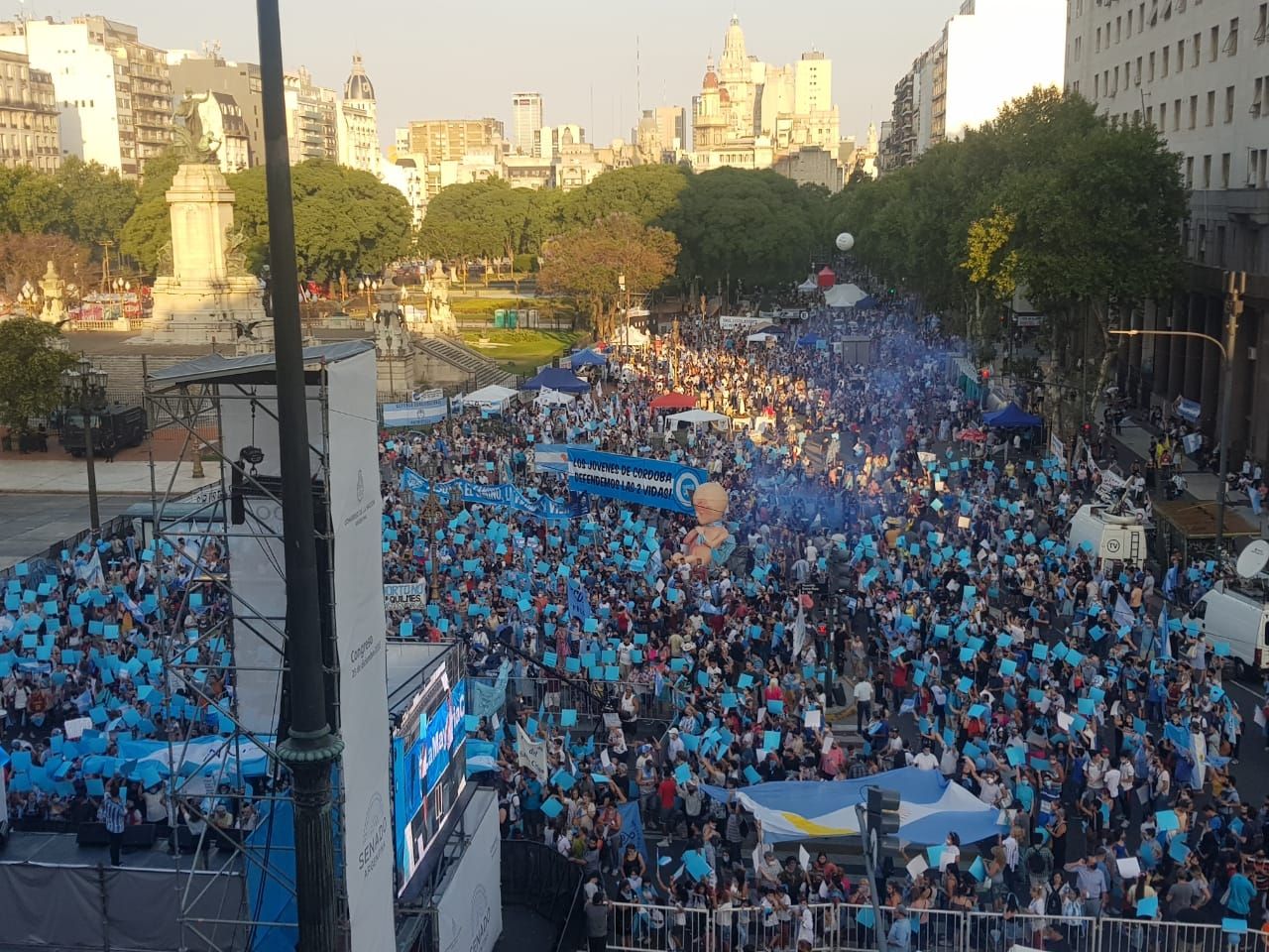 En tanto, quienes se manifiestan en contra del proyecto de ley se reunieron frente al Cabildo Histórico y la plaza 9 de Julio cerca de las 19, hasta que se concrete la votación de los senadores nacionales, por lo que también seguirán la sesión a través de una pantalla gigante.