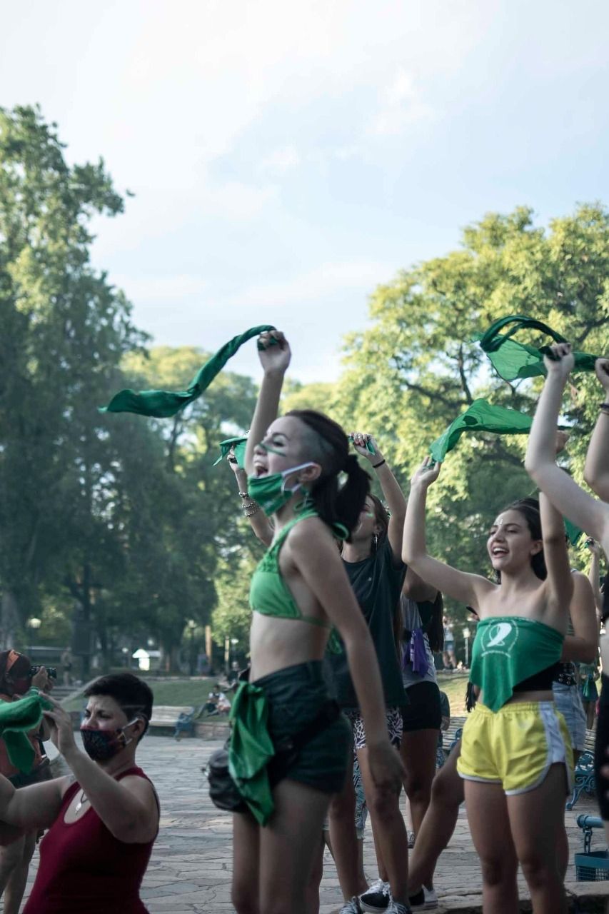 En Jujuy, la principal vigilia arrancó alrededor de las 17 en la plaza Central, frete a la Casa de Gobierno, donde se programó un pañuelazo para decorar todo el espacio de verde, y además se organizó un festival y una feria feminista.