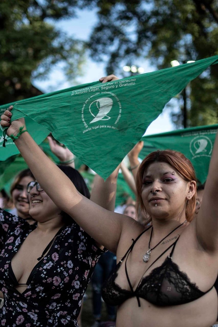 En la ciudad de Rosario, cientos de mujeres participan en la plaza San Martín, frente a la sede local de la Gobernación santafesina, de una vigilia de seguimiento de la votación en el Senado.