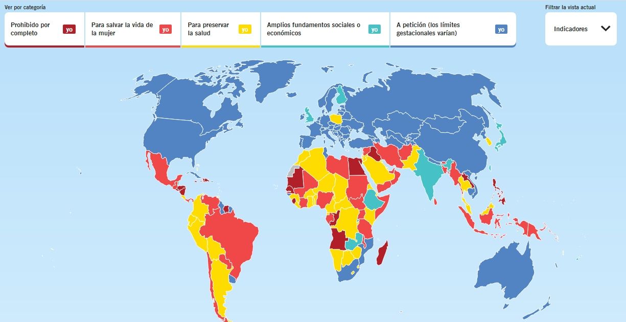 Según la página web del Centro de Derechos Reproductivos, solo 67 países de mundo permiten el aborto bajo cualquier circunstancia. Sin embargo en ellos rigen aún ciertos límites, como el del tiempo de gestación que en en ronda las 12 semanas en la mayoría de países.