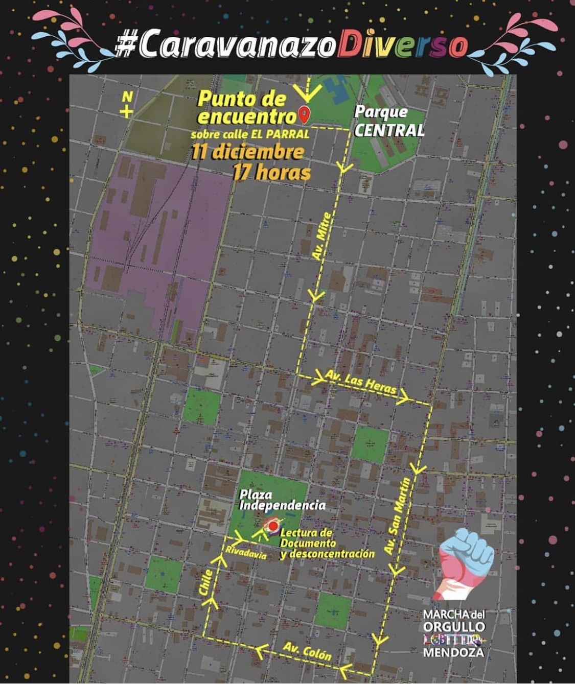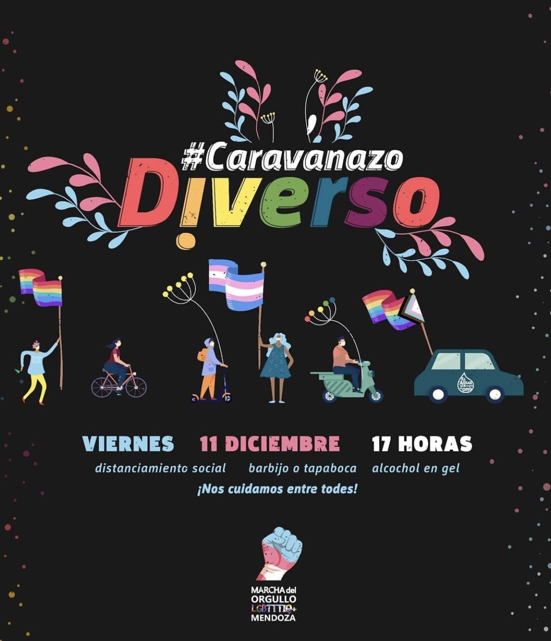 La propuesta presencial será un #CaravanazoDiverso el viernes 11 de diciembre a las 17 horas por diferentes calles de la Ciudad de Mendoza, culminando en la Plaza Independencia.
