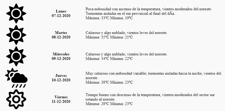Se espera que miércoles y jueves el tiempo continúe con temperaturas similares, mientras que el viernes ingresarán vientos del sur que harán descender la máxima algunos grados.
