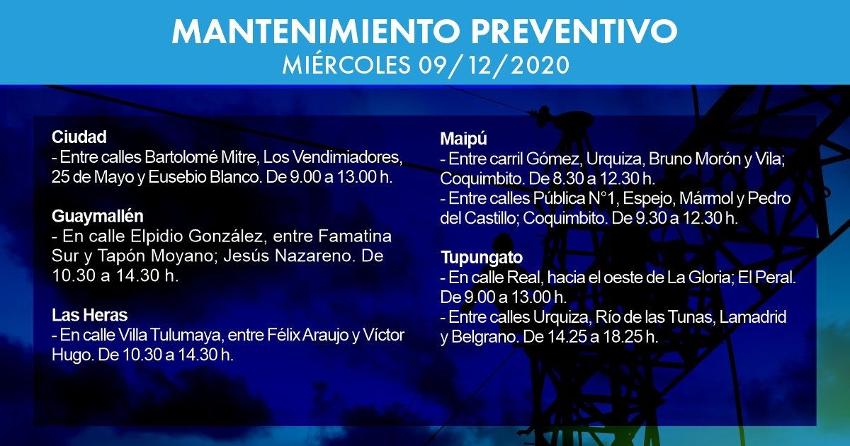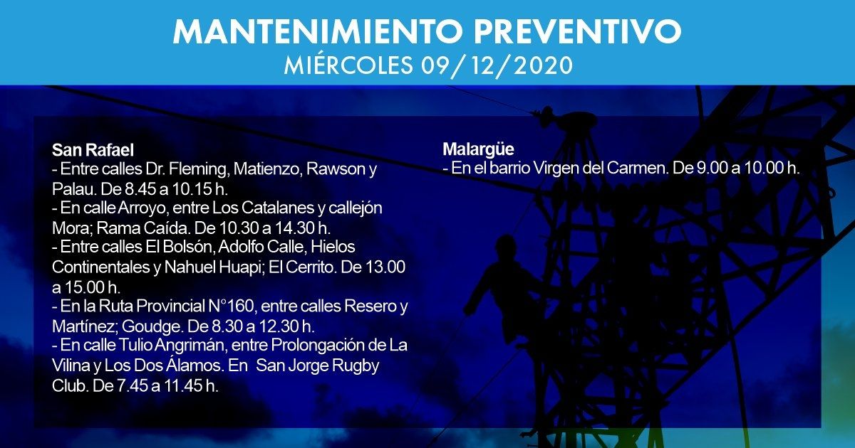 Hoy habrá afectación del servicio eléctrico en las siguientes zonas y horarios. Estas tareas de Edemsa  se realizan bajo los protocolos sanitarios establecidos por el covid-19.