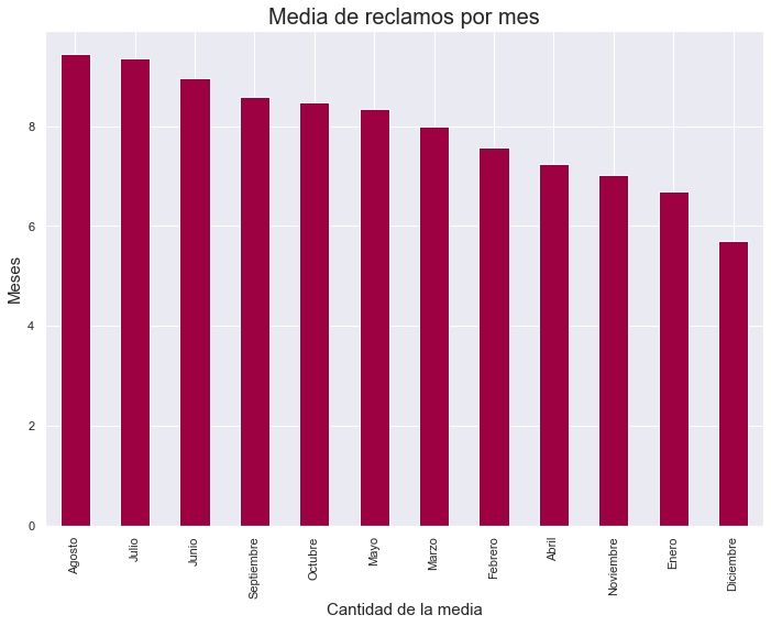Distinta son las cosas si nos centramos en la media (promedio) de reclamos por mes. Es aquí, donde prioriza los meses de invierno pero no nos termina de confirmar la hipótesis.
