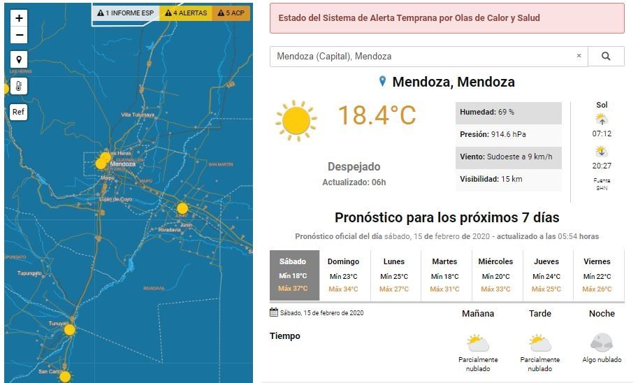 Es que, según indica el Servicio Meteorológico Nacional, el calor volverá a hacerse sentir en Mendoza y el termómetro llegará este sábado a 37 grados centígrados. La mínima, mientras tanto, será de 18 grados.