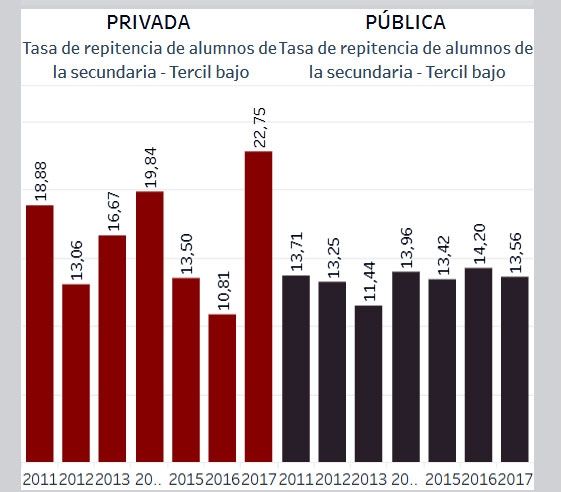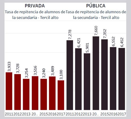 alto casi duplica a los repetidores del tercil bajo, en los privados, la proporción de repetidores del tercil bajo respecto del bajo es 7 a 1, es decir, siete veces más.