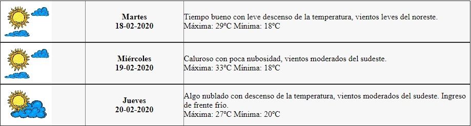 "Tiempo bueno con leve descenso de la temperatura, vientos leves del noreste. Máxima 29ºC, Mínima 18ºC", es la estimación del organismo provincial para hoy, donde seguirá habiendo tiempo agradable.
