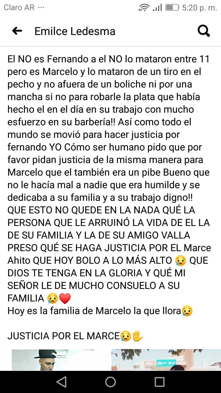 Marcelo Paredes (19) volvía de trabajar cuando lo abordaron tres sujetos. Uno de los ladrones le disparó en el abdomen y esa herida le causó la muerte.