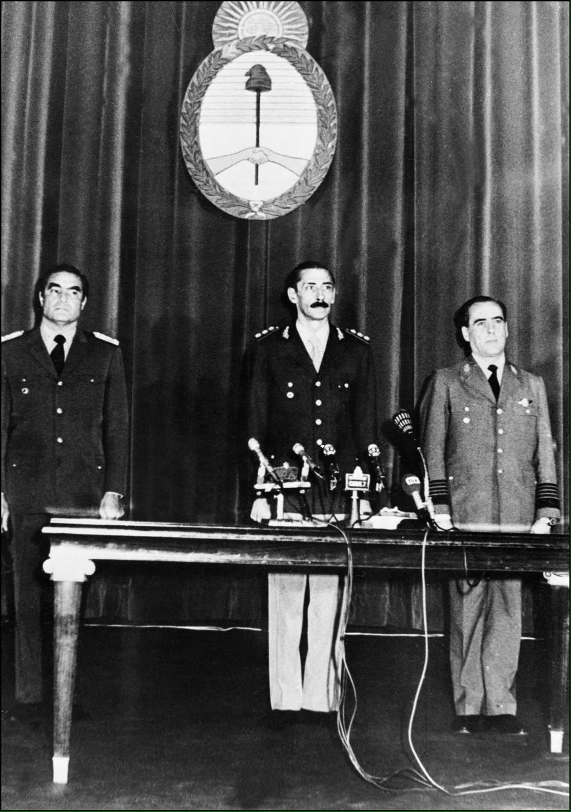 Jorge Rafael Videla, Emilio Eduardo Massera y Orlando Ramón Agosti pergeñaron un golpe de estado contra el gobierno democrático de Isabel Perón y en 1976 se instauró un gobierno de facto cuyo saldo fue de 30 mil desaparecidos.