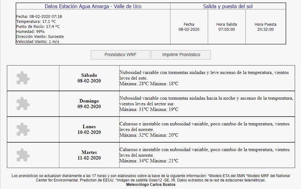 Según ese organismo, la máxima para este sábado será de 28 grados centígrados. "Nubosidad variable con tormentas aisladas y leve ascenso de la temperatura, vientos leves del este", indica el pronóstico.