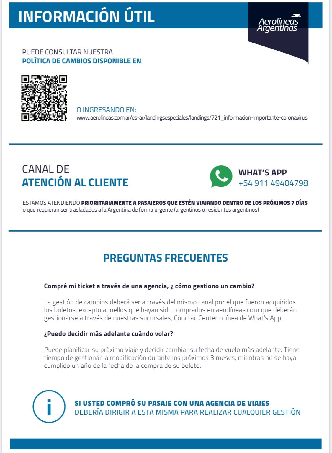Cabe destacar que todos los empleados que no atienden en aeropuerto están abocados a atender el 0800 y el whatsapp que figuran en la imagen anterior.