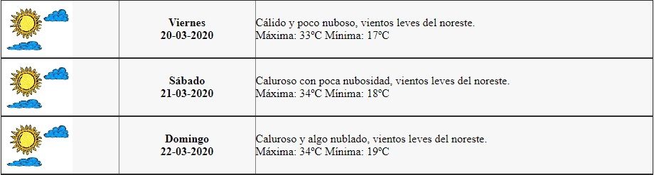 Mañana sábado esta tendencia será acentuada ya que la máxima pronosticada es de 34° también con poca nubosidad. Lo mismo sucederá el domingo.