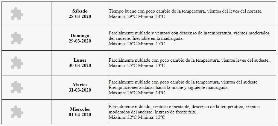Según indica el pronóstico de Contingencias Climáticas, el sábado la máxima será de 29 grados, mientras que la mínima, 14.