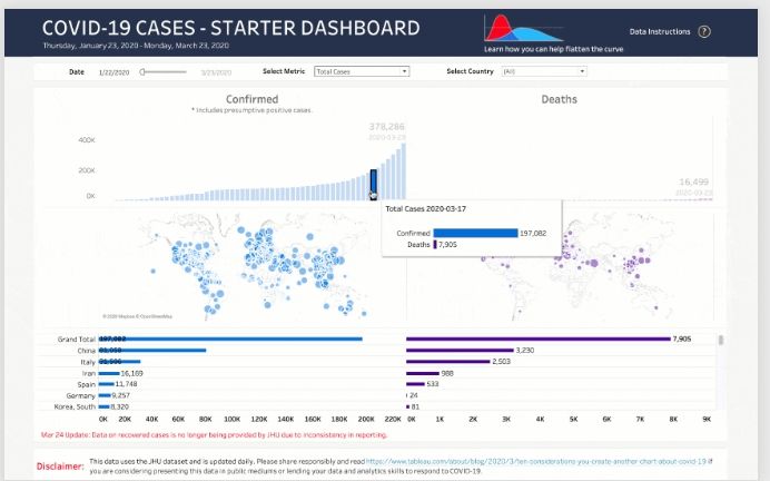 COVID-19 Data Resource Hub (Seattle, USA). Visualización de datos a nivel mundial con la opción de descarga de los difundidos por la Universidad Johns Hopkins.