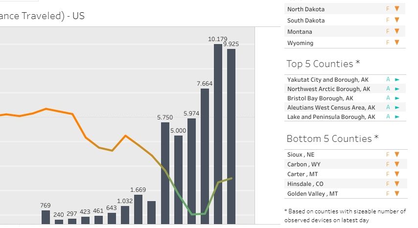 Distancia Social (Unacast.com) Marcador interactivo, actualizado diariamente, para capacitar a las organizaciones para medir y comprender la eficacia de las iniciativas de distanciamiento social a nivel local. Muestra la eficacia de las comunidades para reducir los desplazamientos y a su vez, ralentizar la propagación del virus.