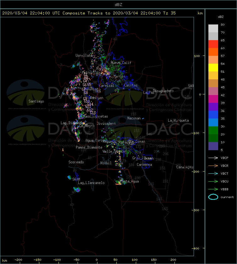 El radar muestra la nubosidad sobre el Gran Mendoza, pero esto no significa que habrá lluvias.