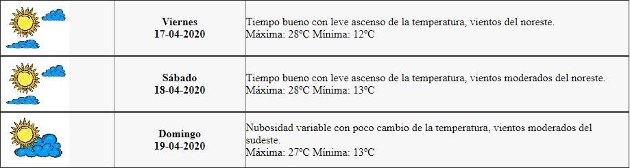 Mañana sábado las condiciones continuarán con esta tendencia ya que se espera una máxima de 28° también y una mínima de 13°, aunque hay posibilidades de que se produzca un leve ascenso de temperatura.