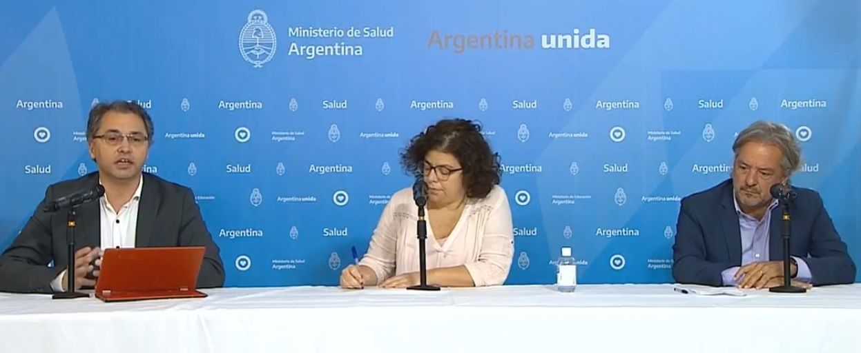 Vizzotti estuvo acompañada por el presidente del Comité de Bioética de la Fundación Huésped, Ignacio Maglio, y del subsecretario de Estrategias Sanitarias, Alejandro Costa, quien brindó el reporte diario 59 sobre la situación del Covid-19 en la Argentina.