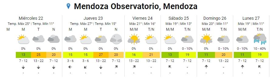 Para este miércoles se espera que continúe el buen tiempo en Mendoza con una mínima de 11°C y una máxima que rondará los 25°C.