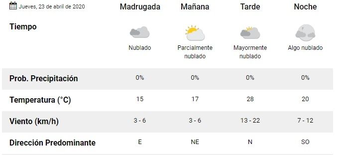 Según los pronósticos del Servicio Meteorológico Nacional (SMN) y la Dirección de Agricultura y Contingencias Climáticas (DACC), para este jueves 23 de abril se espera un cielo algo nublado con ascenso de la temperatura y ocurrencia de viento Zonda en Malargüe, que dará paso a la inestabilidad en ese municipio sureño.