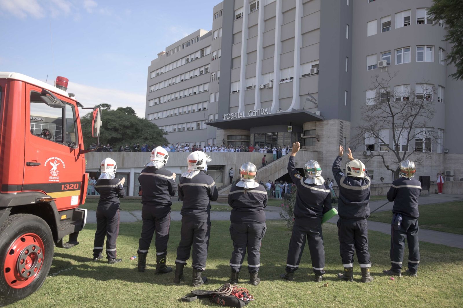 Los bomberos sorprendieron al personal de la salud para homenajearlos