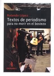 - Textos de periodismo para no morir en el bostezo, de Rolando López. Considerado con justicia como uno de nuestros mejores cronistas, el periodista, músico y escritor resume en este libro sus mayores virtudes en cuando a qué contar y cómo contarlo. Publicado por Diógenes, aquí se recopilan crónicas que en su momento se publicaron en diario Los Andes (donde trabajó muchos años), y otras que se leyeron en revistas nacionales y latinoamericanas. Las hay policiales (en su mayoría), deportivas y de personajes fuera de catálogo. Con oficio y empatía, RL encuentra historias de vida donde otros apenas ven meros anzuelos de clics. Otros títulos de López para rastrear: Partes diarios, Entrevista con el bandido, Hasta que vuelva a tenerte y Canelo (el perro que esperó a su dueño 12 años).