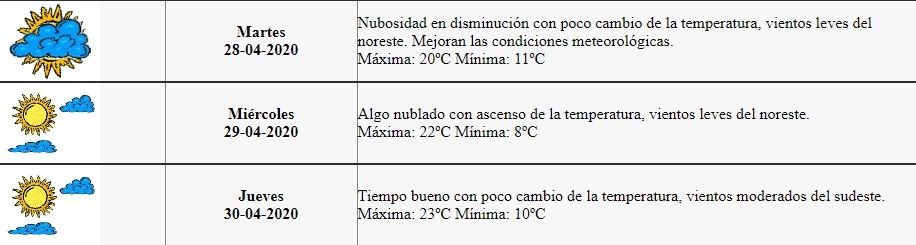 Así lo indica el pronóstico de la Dirección de Contingencias Climáticas, que estima para hoy un día con "Nubosidad en disminución con poco cambio de la temperatura, vientos leves del noreste. Mejoran las condiciones meteorológicas. Máxima 20ºC, Mínima 11ºC".