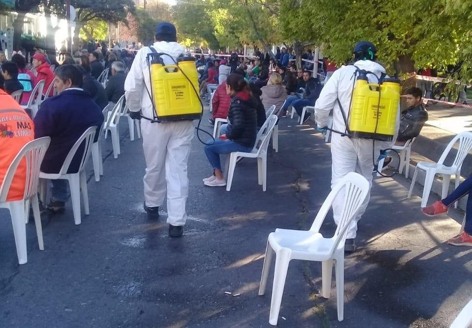 En el sur de la provincia, en San Rafael precisamente, la situación fue abordada el mismo viernes de manera prolija, ya que se montó un operativo de contención y asistencia para los jubilados que contó con sillas ordenadas para la espera, baños químicos, provisión de alcohol en gel y hasta un puesto de vacunación contra la gripe en las cercanías del Banco Nación.