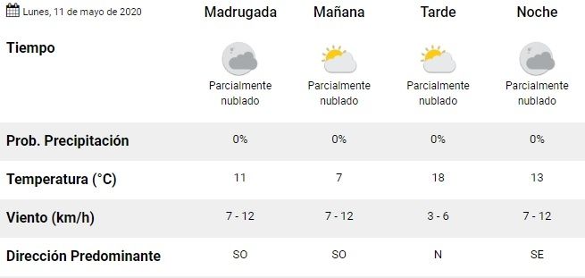 Para este lunes 11 de mayo, se espera tiempo bueno con cielo parcialmente nublado y descenso de la temperatura.
