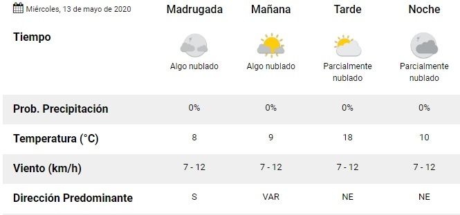 Para este miércoles 13 de mayo, se espera tiempo bueno con poca nubosidad y descenso de la temperatura.