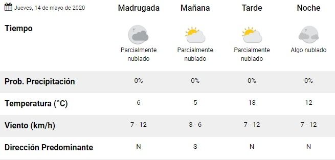 Para este jueves 14 de mayo, se espera tiempo bueno con nubosidad variable y ascenso de la temperatura.