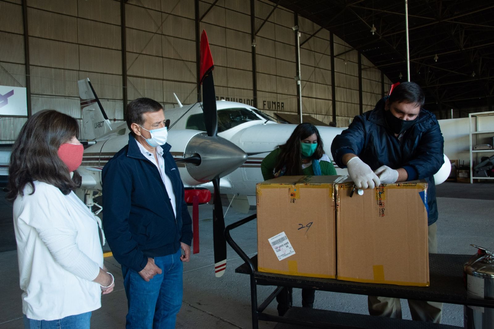Los test llegaron al hangar de la lucha antigranizo y fueron adquiridos por la provincia a través de un convenio con el Gobierno de Jujuy. Rodolfo Suarez y la ministra de Salud, Desarrollo Social y Deportes, Ana María Nadal, llegaron hasta el lugar para recibir el envío proveniente de Buenos Aires.