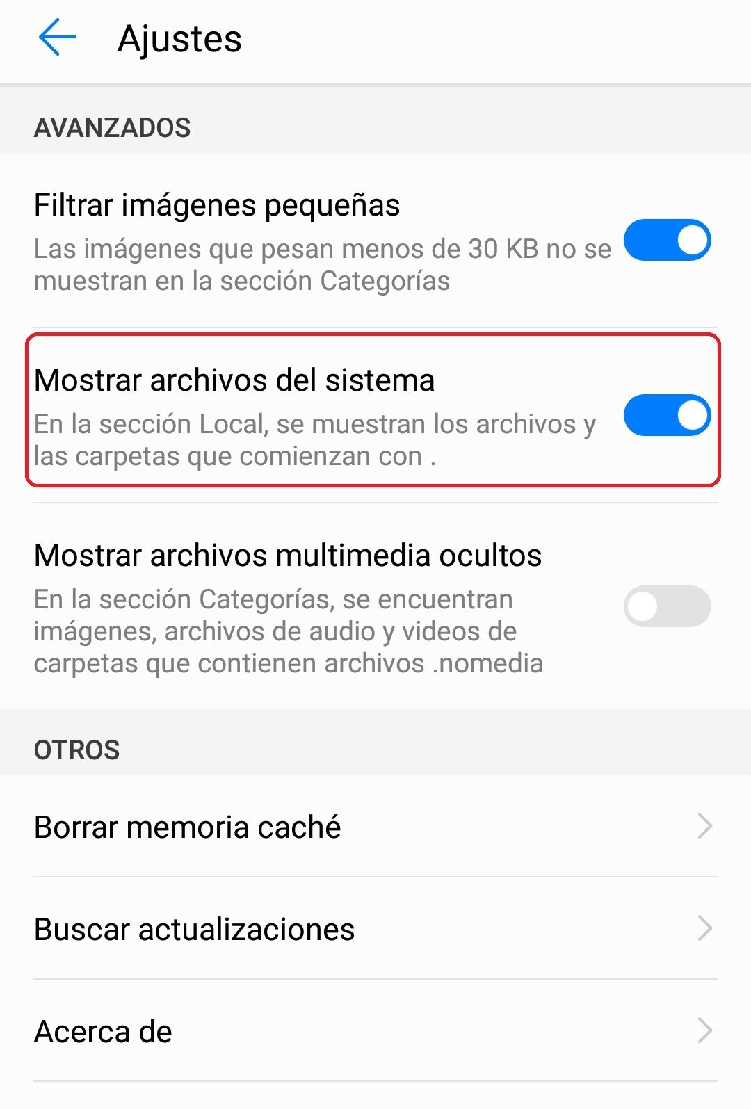 Una vez allí se pueden ver todas las fotos, videos, audios y stickers que alguna vez enviamos o que nos enviaron, pero también están los estados. El truco es que la carpeta está oculta. Para verla, debemos ir a los ajustes y marcar "mostrar archivos de sistema".