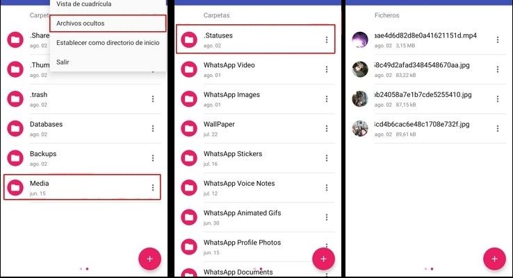 Una vez que esa opción está seleccionada, se podrá ver la carpeta llamada "statuses", que guarda todos los estados que vemos. Atención: se borra cada 24 horas, así que no hay que dejar pasar el tiempo.