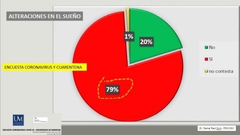Un 79% de las personas marcó padecer alteraciones significativas del sueño. La mayor parte, a modo de retraso en la fase, es decir, se duermen más temprano y se despiertan más tarde.
