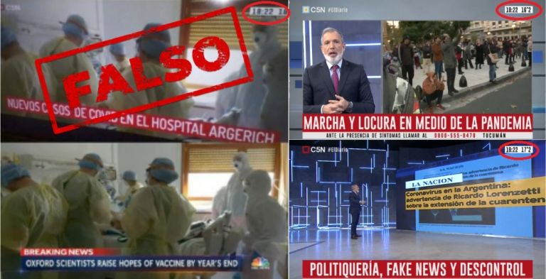 Es decir que, si bien, las 2 imágenes de los tuits son piezas extranjeras -fueron reproducidas por el canal estadounidense NBC News en abril último (ver acá y acá)- no fueron puestas al aire por el canal argentino para ilustrar situaciones locales vinculadas con la pandemia de la COVID-19.