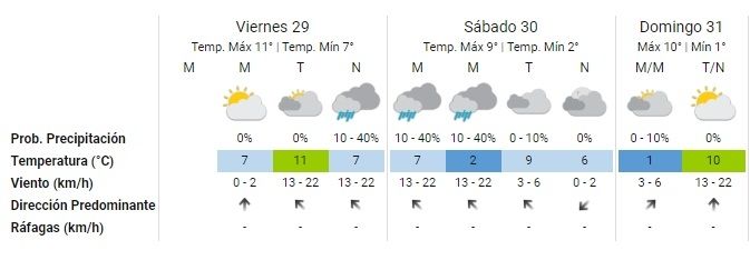 En tanto, en el Gran Mendoza la temperatura hoy oscilará entre los 7º y los 11º, y durante la noche se podrían producir lluvias que podrían durar hasta la mañana del sábado.
